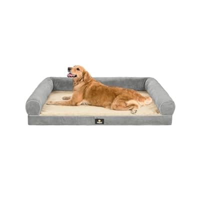 Friends Forever Small Dog Bed, Orthopedic Dog Sofa Memory Foam Mattress, Calming Dog Couch Bed, Wall Rim Pillow, Water Resistant Liner, Washable Cover, Non-Slip Bottom, Chester, Small Grey