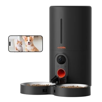 WOPET Automatic Cat Feeder with Camera for Two Cats, 1080p HD Automatic Dog Feeder, 5G WiFi Pet Feeder with Night Vision for Cat & Dog, SD Card Storage & 2-Way Audio