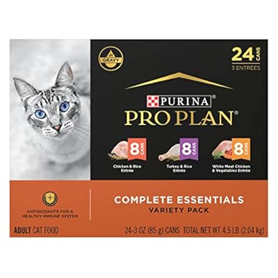 Purina Pro Plan Gravy, High Protein Wet Cat Food Variety Pack, Complete Essentials Chicken and Turkey Favorites – (Pack of 24) 3 oz. Cans