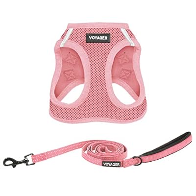 Voyager Step-in Air All Weather Mesh Harness and Reflective Dog 5 ft Leash Combo with Neoprene Handle, for Small, Medium and Large Breed Puppies by Best Pet Supplies - Harness Leash Set (Pink), XS