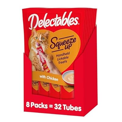 Hartz Delectables Squeeze Up Interactive Lickable Wet Cat Treats for Adult & Senior Cats, Chicken, 0.5 Oz – 4 Count (Pack of 8) – Packaging May Vary