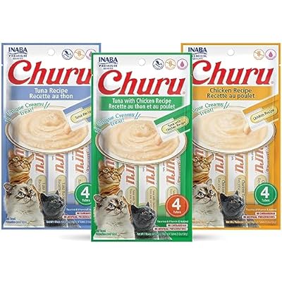 INABA Churu Lickable Purée Natural Cat Treats Tuna & Chicken 3 Flavor Assortment of 12 Tubes
