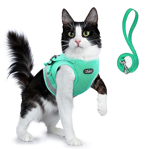 Supet Cat Harness and Leash Escape Proof, Adjustable Breathable Vest with Reflective Trim for Large Small Cats Kittens Puppies