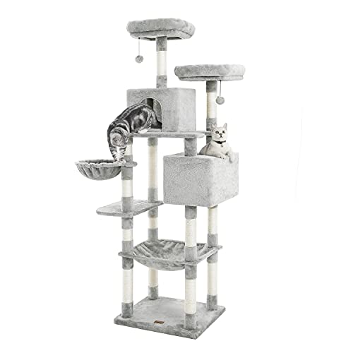 Kilodor Tall Cat Tree, 75inch Cat Tower Multi Level Condo with Large Hammocks, Scratching Posts,Plush Perches Cat Activity Center Light Gray