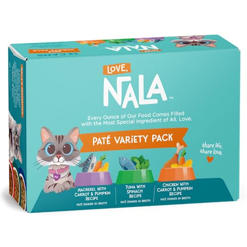LOVE, NALA – Natural Adult Cat Wet Food – Pate Variety Pack – Tuna, Chicken, Mackerel – Grain Free, Non-GMO, Fiber Blend, Minerals, Vitamins – 12 Pack 2.4 lbs.