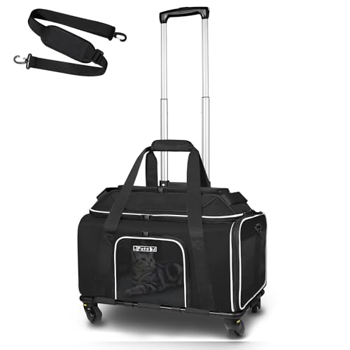 Petskd Top-Expandable Pet Carrier with Wheels 17x12x8.5 Inches JetBlue Frontier Spirit Airline Approved, Soft-Sided Carrier for Small Cats Dogs with Locking Safety Zippers and Anti-Scratch Mesh(Black)