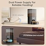 🐱【Dual Power Convenience】 – Never worry about power outages! Our automatic cat feeder and water fountain combo come with dual power options. Use the included chew-resistant power cable or 3 D-size alkaline batteries (not included) for up to 180 days of uninterrupted operation. Now you can place the feeder wherever it’s most convenient for your home or your pet, without worrying about wires—ideal for flexible, stress-free pet care.