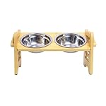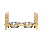 This elevated dog bowls is made of natural bamboo, with a smooth surface, durable, sturdy, and easy to clean, without any odor. It comes with two stainless steel bowls, each with an inner diameter of 6 inches, suitable for various types of pet food and water.