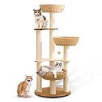 52″ Modern Cat Tree Tower for Large Cats, 3Cat Nests Manual Hand Woven Multilevel Huge Paws Pals Cat Tree, Wood Cat Tower, Cat Scratching Tree, Cat Condo, Cat Lover Gift, Real Branch Luxury Cat Condo