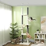 PawHut Cat Tree Tower, Floor to Ceiling Cat Tree, Adjustable Height (89″- 100″), 7 Tier Cat Tower with Scratching Posts, Hammock, Perches, Toy Balls & Rope Cat Toy for Indoor Cats, White