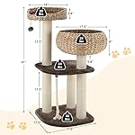 Selected New Materials & Hand Crafting: The cat scratching post is wrapped with 100% natural sisal ropes. Thick wide base is made by premium engineered wood, strong and stable. Above all, the basket bed and the cat condo are handcrafted from natural water hyacinth straws, and skin-friendly flannel fabric cover provides feline-friendly softness and warmth.