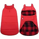 ASENKU Plaid Dog Winter Coat, Dog Fleece Jacket Plaid Reversible Dog Vest Waterproof Windproof Cold Weather Dog Clothes Pet Apparel for Small Medium Large Dogs Red M