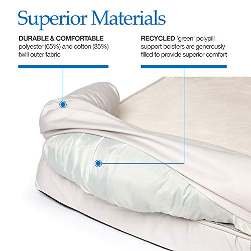 Premium components: (I) solid 4 inch memory foam base for superior overall comfort, reduced joint pain and improved health, mobility, & energy. (Ii) recycled ‘green’ Polyfill support bolsters are generously filled. (Iii) durable & Comfortable polyester (65%) & cotton (35%) twill.