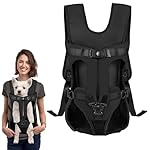 Dog Front Carrier Backpack, Dog Backpack Carrier Soft Pad, Pet Legs Out, Easy-Fit Dog Front Carrier for Small Medium Puppy, Hands Free Dog Carrier Adjustable for Cycling Hiking (Black, M)
