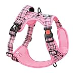 PoyPet No Pull Dog Harness, Reflective Adjustable No Choke Pet Vest with Front & Back 2 Leash Attachments, Soft Control Training Handle for Small Medium Large Dogs(Checkered Pink,S)