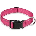 Reflective Dog Collar with Buckle Adjustable Safety Nylon Collars for Small Medium Large Dogs, Pink S