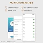 App Control: Feed your pets anytime and anywhere by using the smart control app. Set 1-10 meals per day with 1-12 portions per meal. Track feeding records and share the device with multiple accounts. The auto cat feeder dry food supports 2.4GHz network only.
