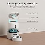 Freshness in Every Bite: Patent rotor in the tank base and twist-lock lid prevent pets sneaking into the food dispenser for extra food. Built-in desiccant bag and sealing strip keep food fresh and crunchy. Food-grade stainless steel bowl provides healthy and hygienic feeding, saving your pets from chin acne.