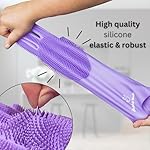 Dog Washing Gloves with Bristle Scrubbers, Reusable Silicone Gloves Ideal for Pet Bathing, Massaging & Grooming (Purple)