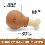 Built to Last: This Turkey Day Drumstick is sure to satisfy your dog’s appetite to chew, chomp, and gnaw. Made with durable natural rubber and a tough nylon core, your dog will be chewing long after dessert is served.